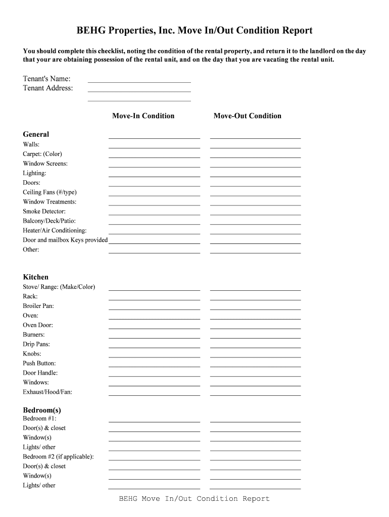 Get the free BEHG Move In/Out Condition Report