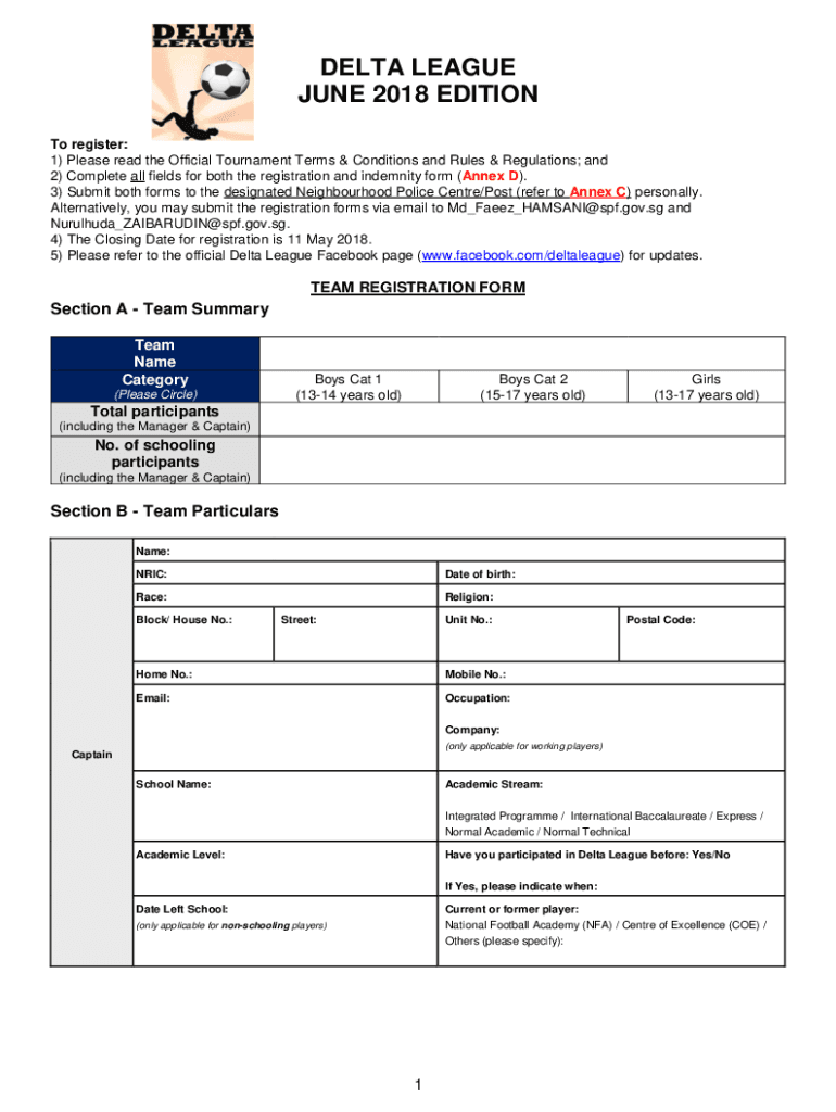 DELTA LEAGUE JUNE 2018 EDITION To register: 1) Please read the Official Tournament Terms & Conditions and Rules & Regulations; and 2) Complete all fields for both the registration and indemnity form