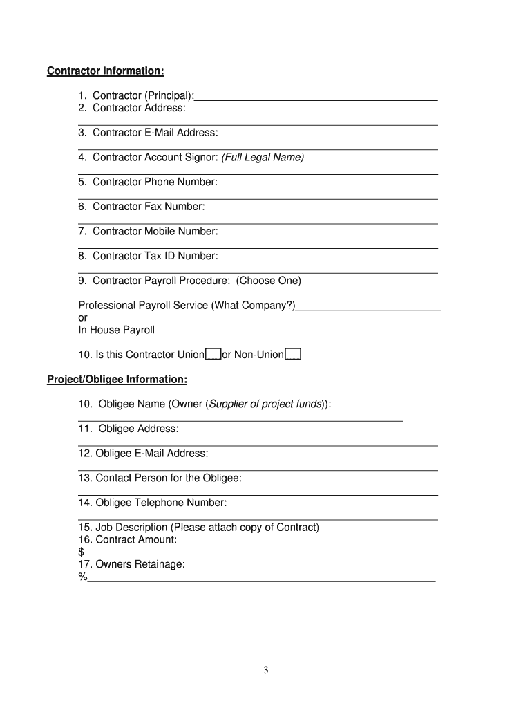 2.Carefully read through the document to understand the information required. Gather relevant details including contractor, obligee, and surety contact information, as well as specific project and financial terms.