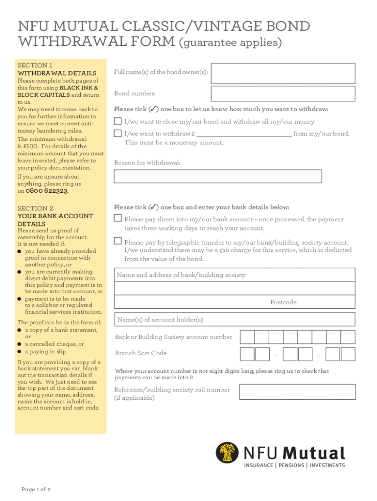 Get the free NFU Mutual Classic/Vintage Bond Withdrawal Form (opted out of ...