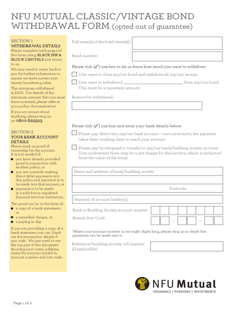 NFL MUTUAL CLASSIC/VINTAGE BOND WITHDRAWAL FORM (opted out of guarantee) SECTION 1 WITHDRAWAL DETAILSPlease complete both pages of this form using BLACK INK & BLOCK CAPITALS and return to us. We may