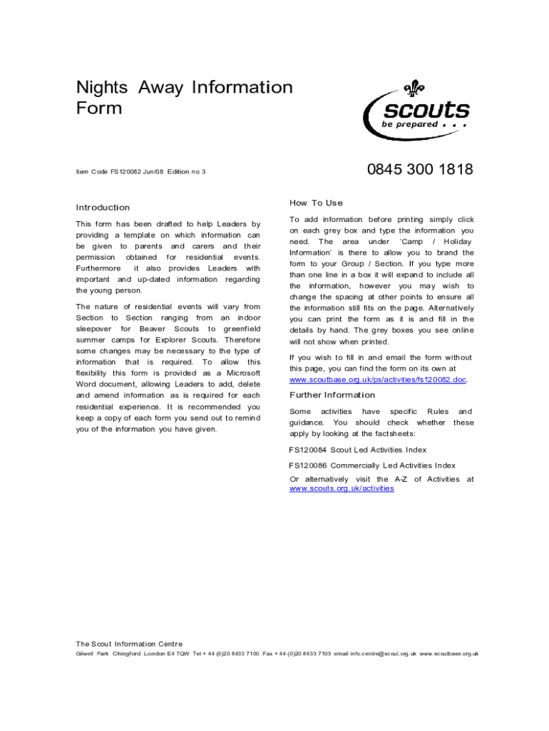 Fill out your nighthike-nights away ampamp parental online with pdfFiller!