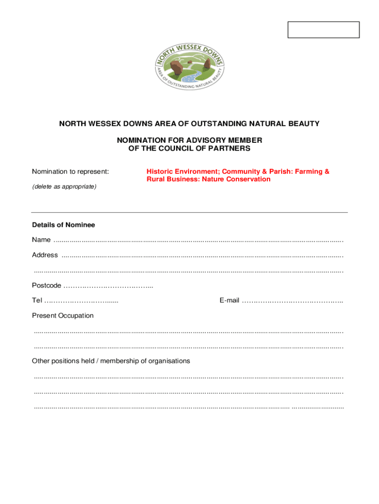 Get the free NOMINATION FOR ADVISORY MEMBER - northwessexdowns org