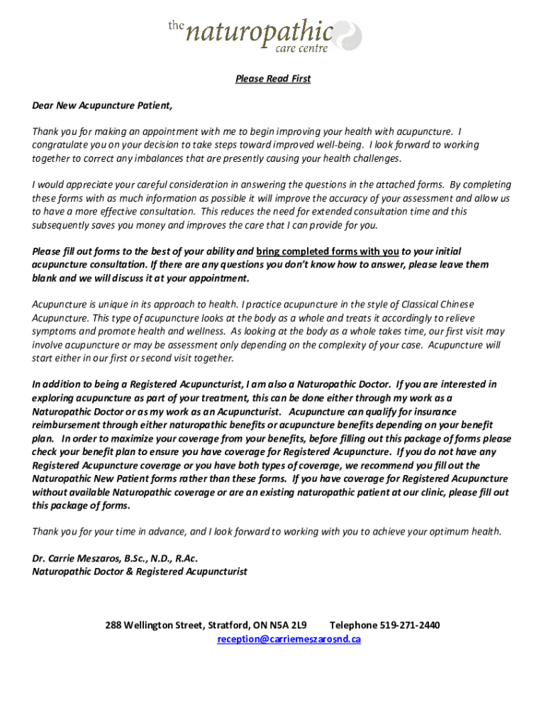 Dear New Acupuncture Patient,