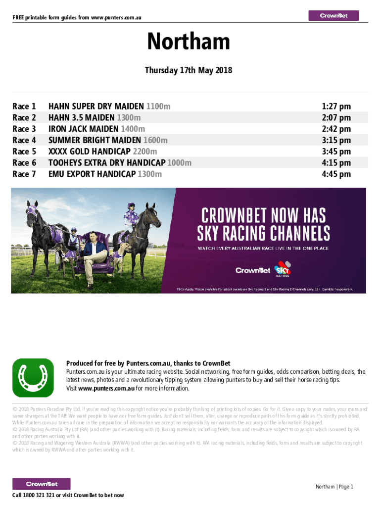 Get the Northam Printable Form Guide - Thursday 17th May 2018. FREE Printable Horse Racing Form G...
