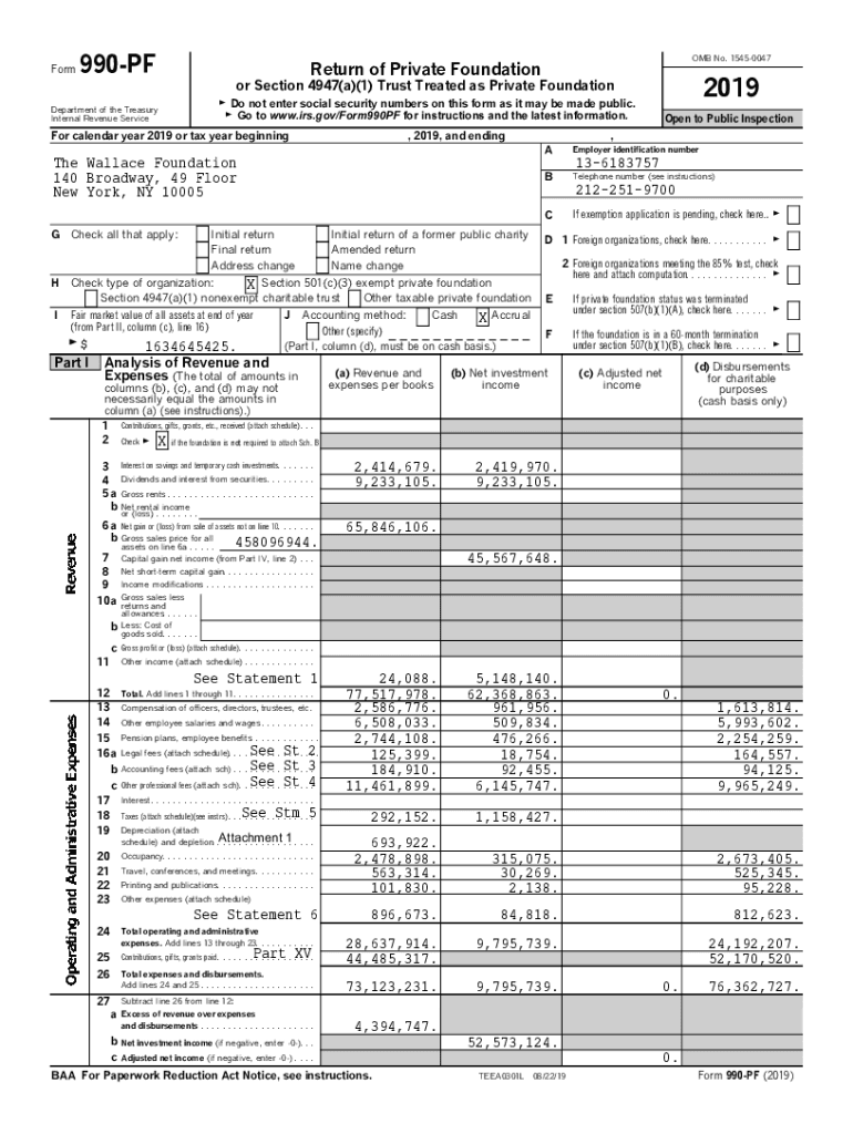Form990PFOMB No. 15450047Return of Private Foundation2019or Section 4947(a)(1) Trust Treated as Private Foundation