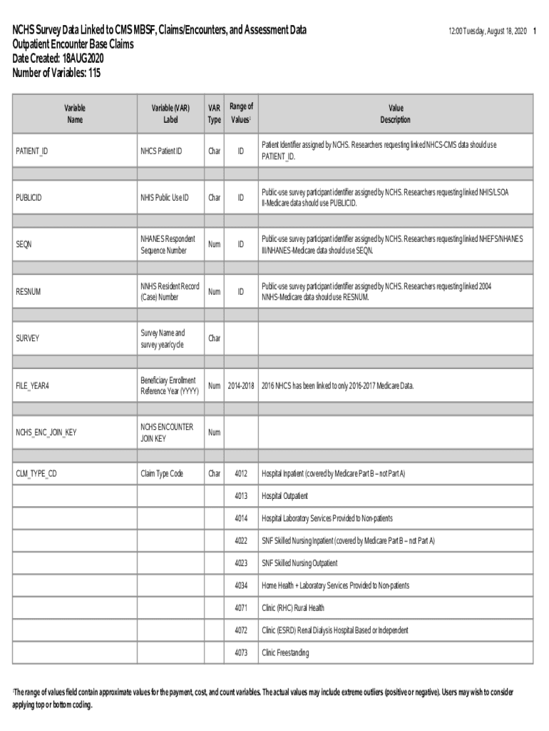 Get the free NCHS Survey Data Linked to CMS MBSF, Claims ... - CDC