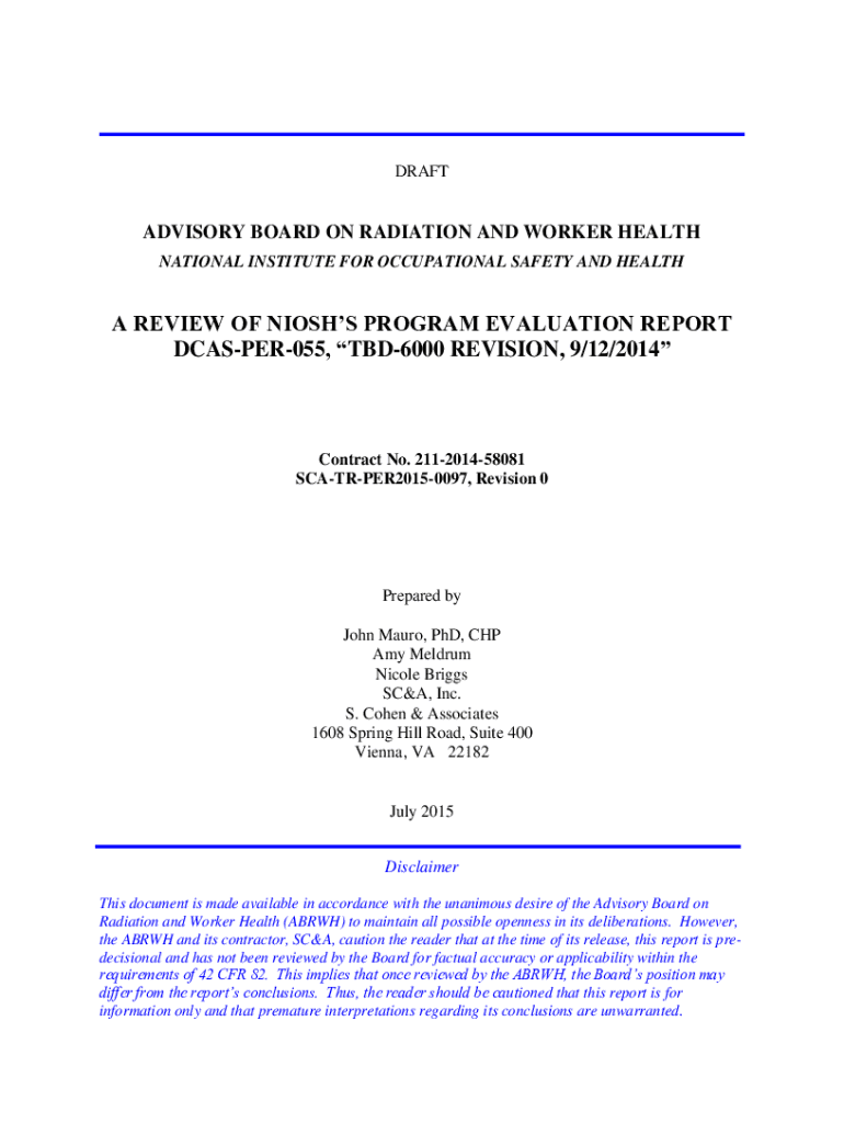 DRAFTADVISORY BOARD ON RADIATION AND WORKER HEALTH NATIONAL INSTITUTE FOR OCCUPATIONAL SAFETY AND HEALTH REVIEW OF KIOSKS PROGRAM EVALUATION REPORT DCASPER055, TBD6000 REVISION, 9/12/2014Contract