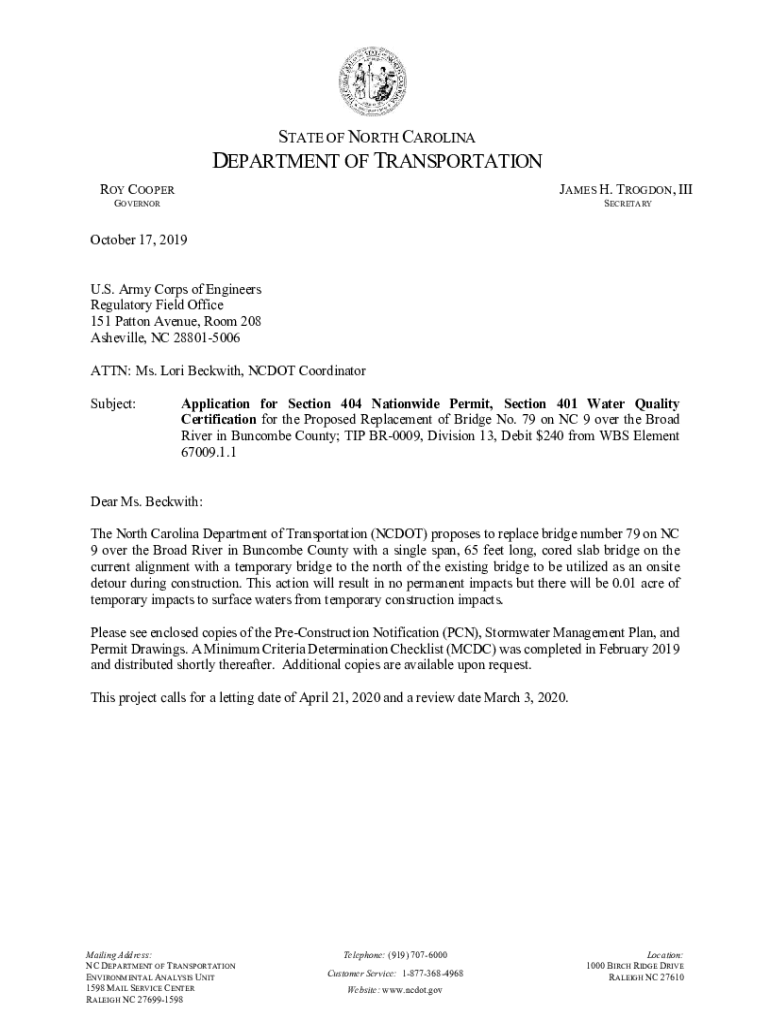 ROY COOPERATES H. TRODDEN, IIIGOVERNORSECRETARYOctober 17, 2019