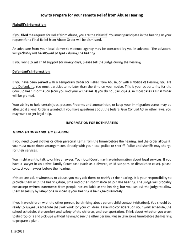 Get the free How to Prepare for your remote Relief from Abuse Hearing