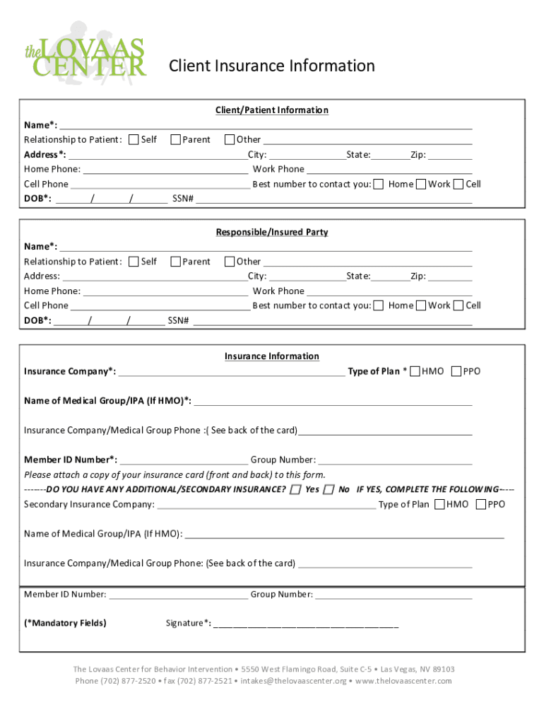 How to fill out client insurace eligibility form