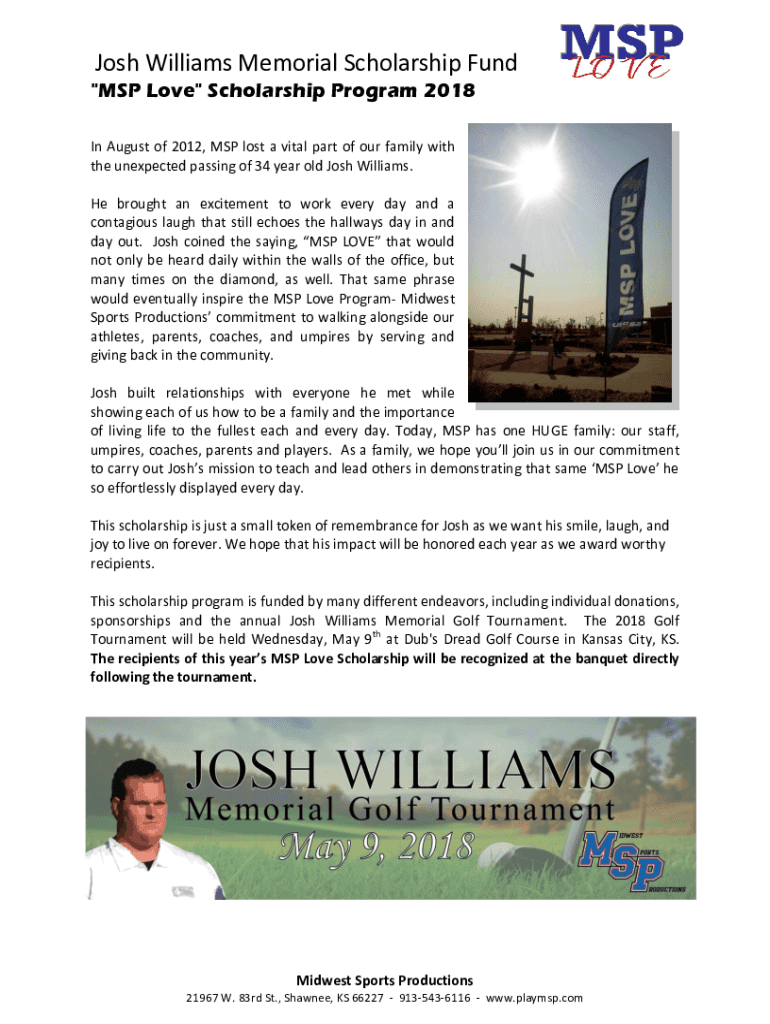 Get the free Josh Williams Memorial Scholarship Fund - Home
