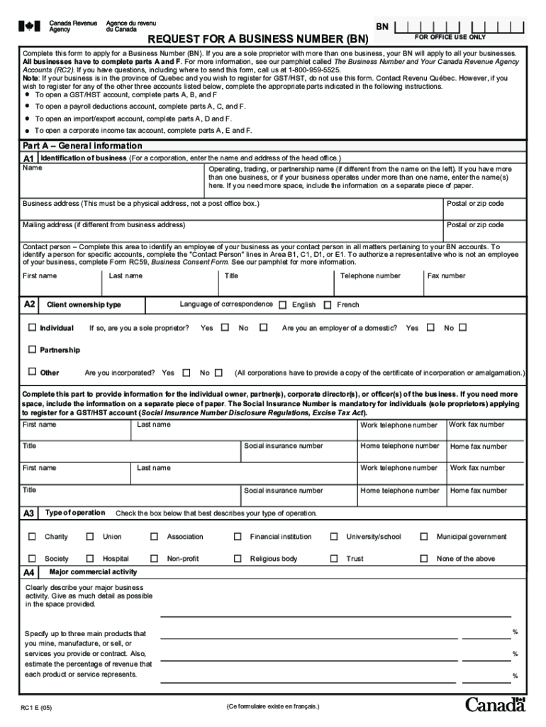 RestoreHelpBNREQUEST FOR A BUSINESS NUMBER (IN)FOR OFFICE USE Incomplete this form to apply for a Business Number (IN). If you are a sole proprietor with more than one business, your IN will apply