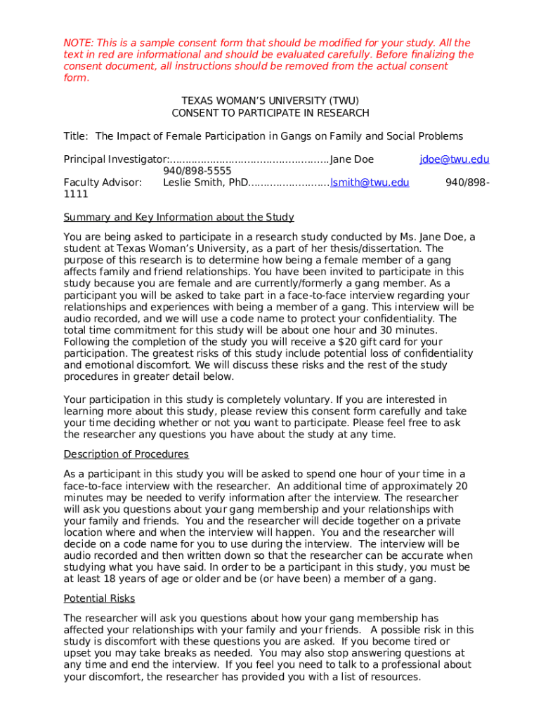 Instructions for the form NOTE: This is a sample consent that should be modified ...