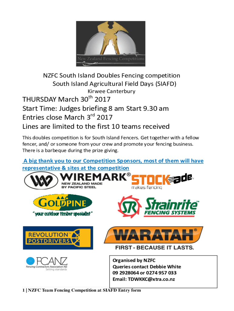 Get the free NZFC South Island Doubles Fencing Competition at the ...