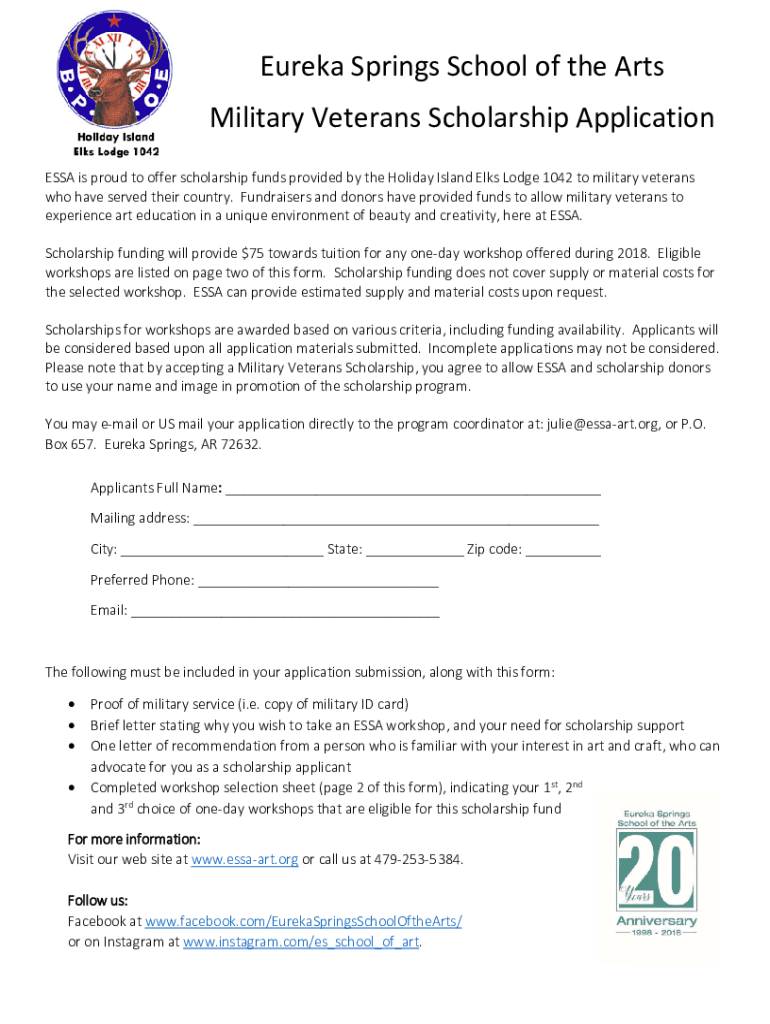 ESSAisproudtoofferscholarshipfundsprovided by the Holiday Island Elks Lodge 1042 tomilitaryveterans