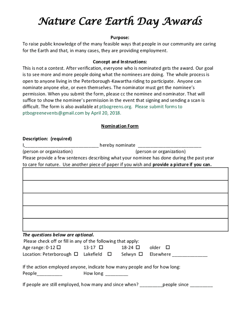 Get the free Nature Care Earth Day Awards