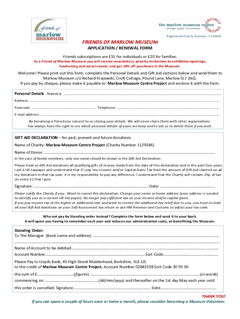 Registered Charity Number: 1129346FRIENDS OF MARLOW MUSEUM