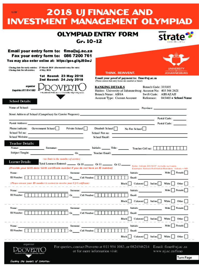 INVESTMENT MANAGEMENT OLYMPIAD ENTRY FORMsponsorGr. 1012Email your entry form to: fimo@uj.ac.za