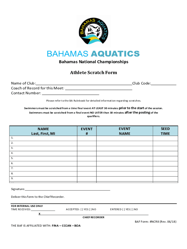 Get the free Nationals Scratch Form - Bahamas Swimming Federation