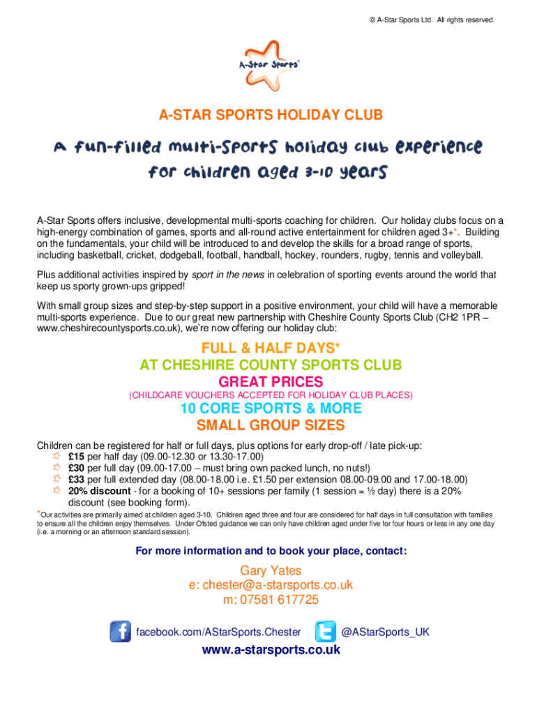 Get, Create, Make and Sign holiday clubs - sports