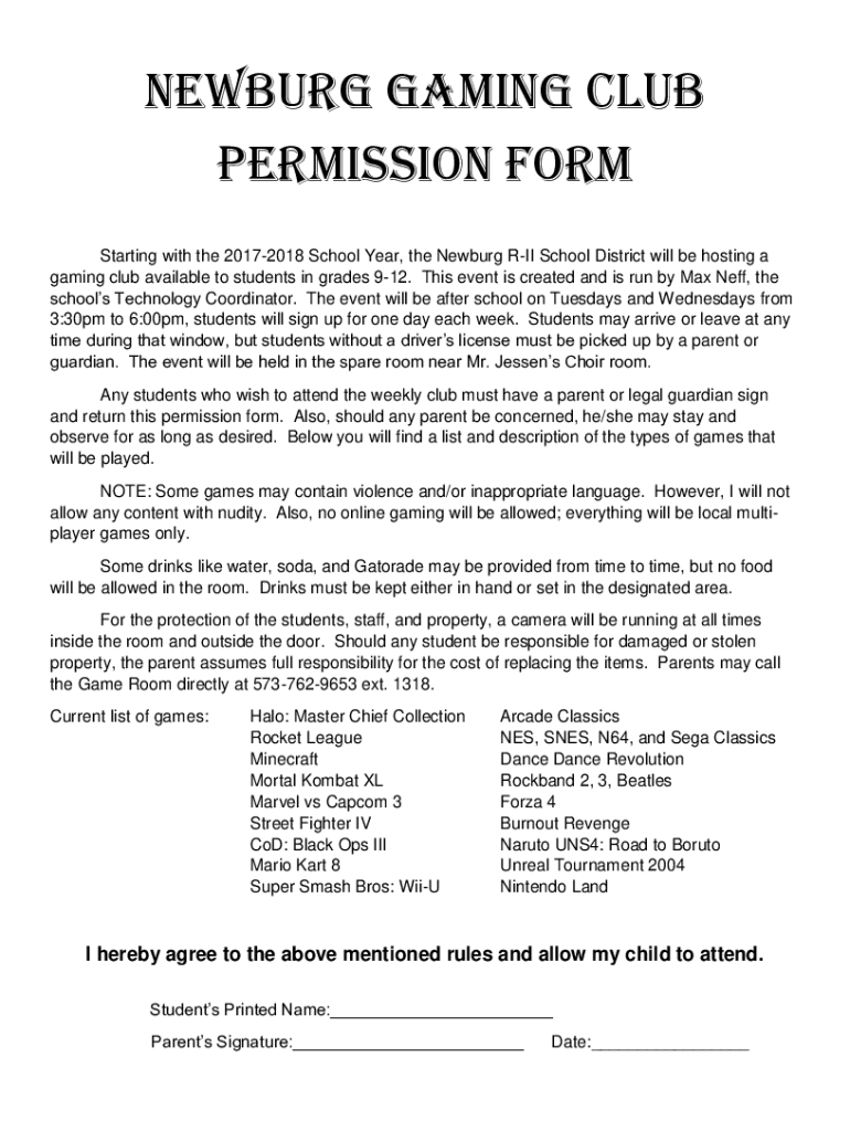 gaming club available to students in grades 912. This event is created