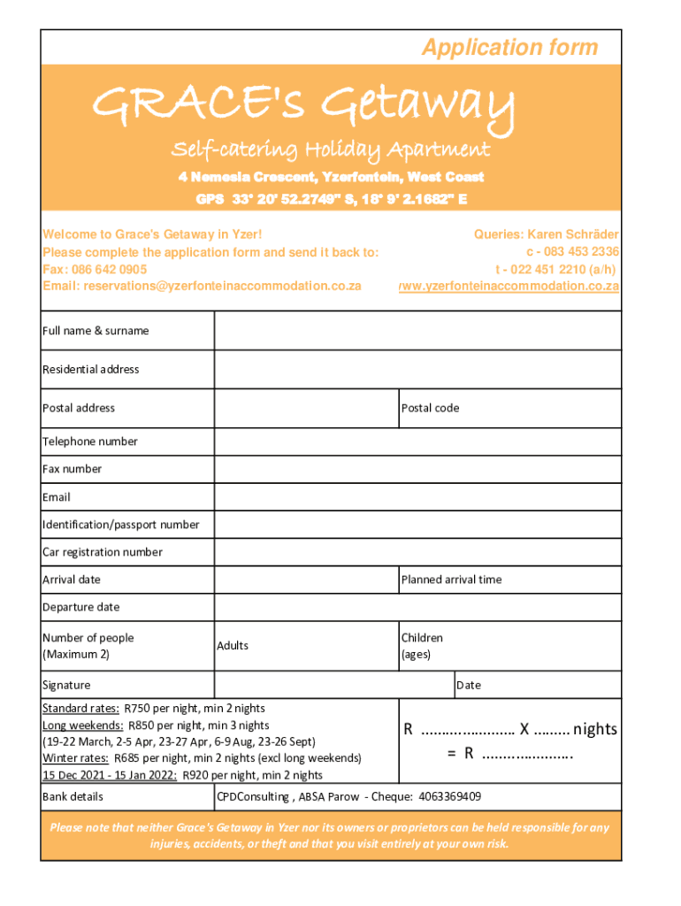 Edit your graces getaway - yzerfontein form online