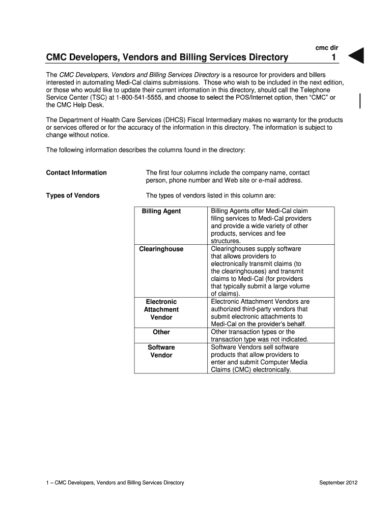 CMC Dirac Developers, Vendors and Billing Services Directory1The CMC Developers, Vendors and Billing Services Directory is a resource for providers and killers