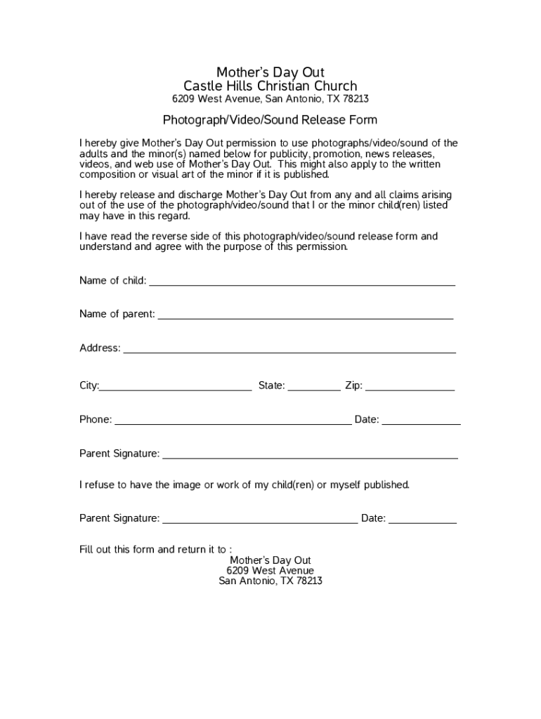 6209 West Avenue, San Antonio, TX 78213Photograph/Video/Sound Release Form