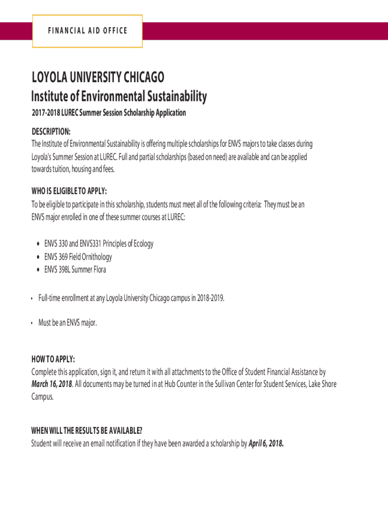 20172018 LURE Summer Session Scholarship Application