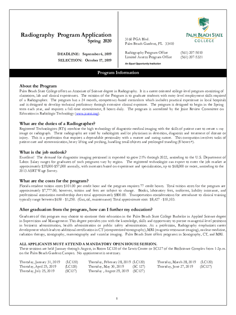 Palm Beach Gardens, FL 33410Spring 2020Radiography Program Office