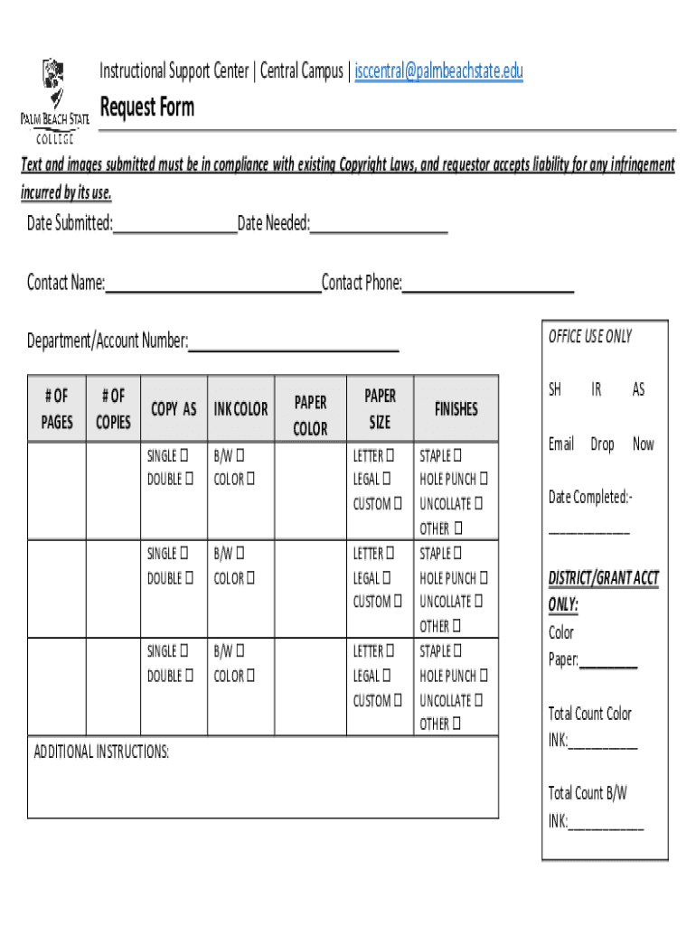 Instructional Support Center Central Campus central palmbeachstate. Request Form Text and images submitted must be in compliance with existing Copyright Laws, and requestor accepts liability for any