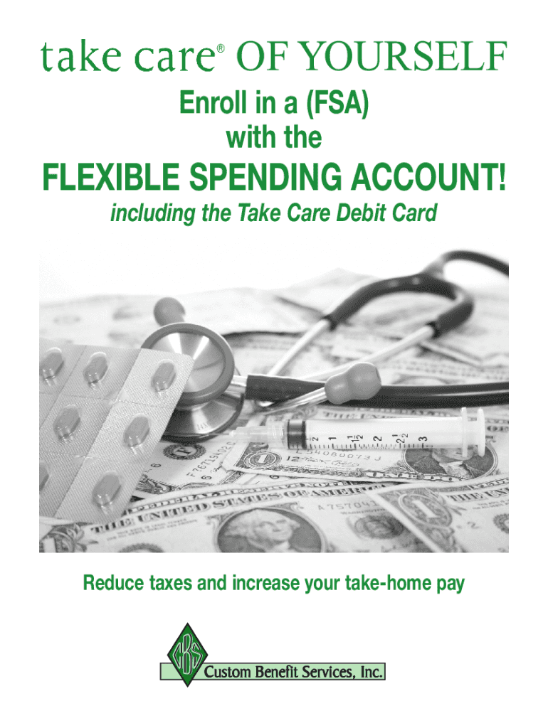 Including the Take Care Debit CardReduce taxes and increase your take home pay Flexible Spending Account