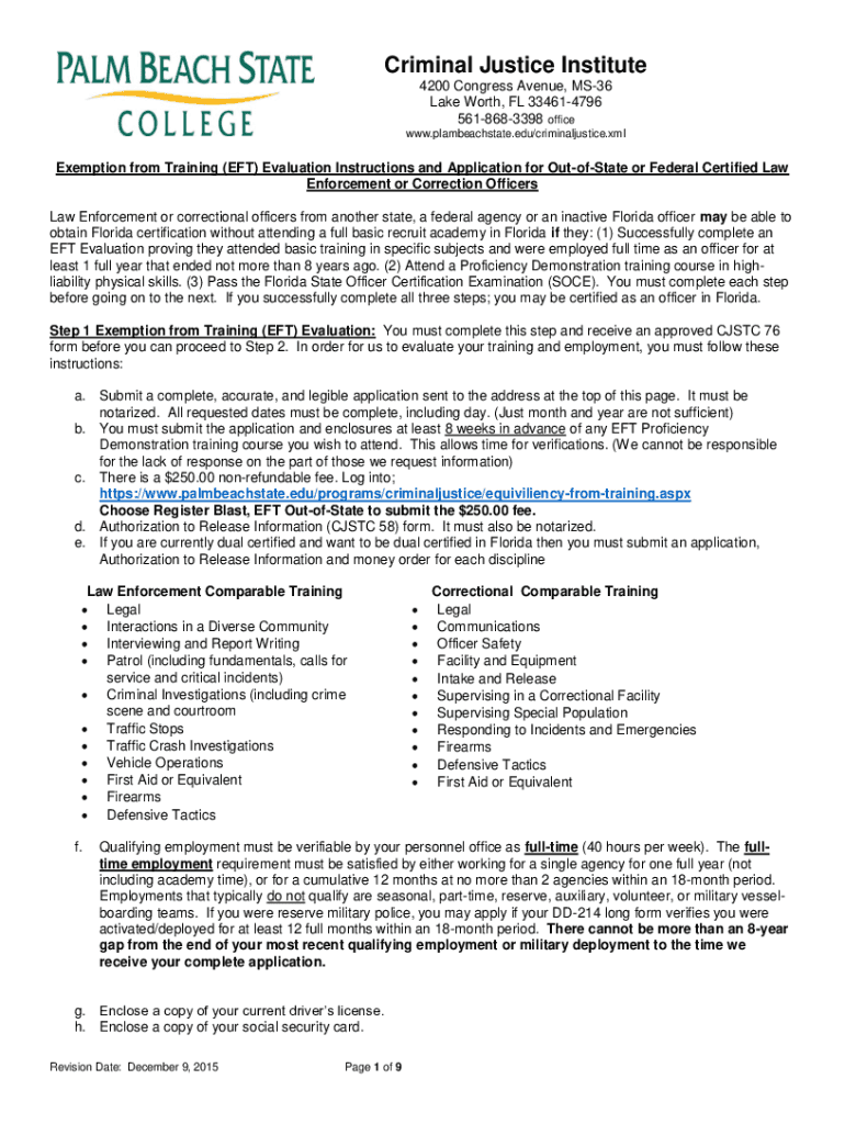 www.plambeachstate.edu/criminaljustice.xmlExemption from Training (EFT) Evaluation Instructions and