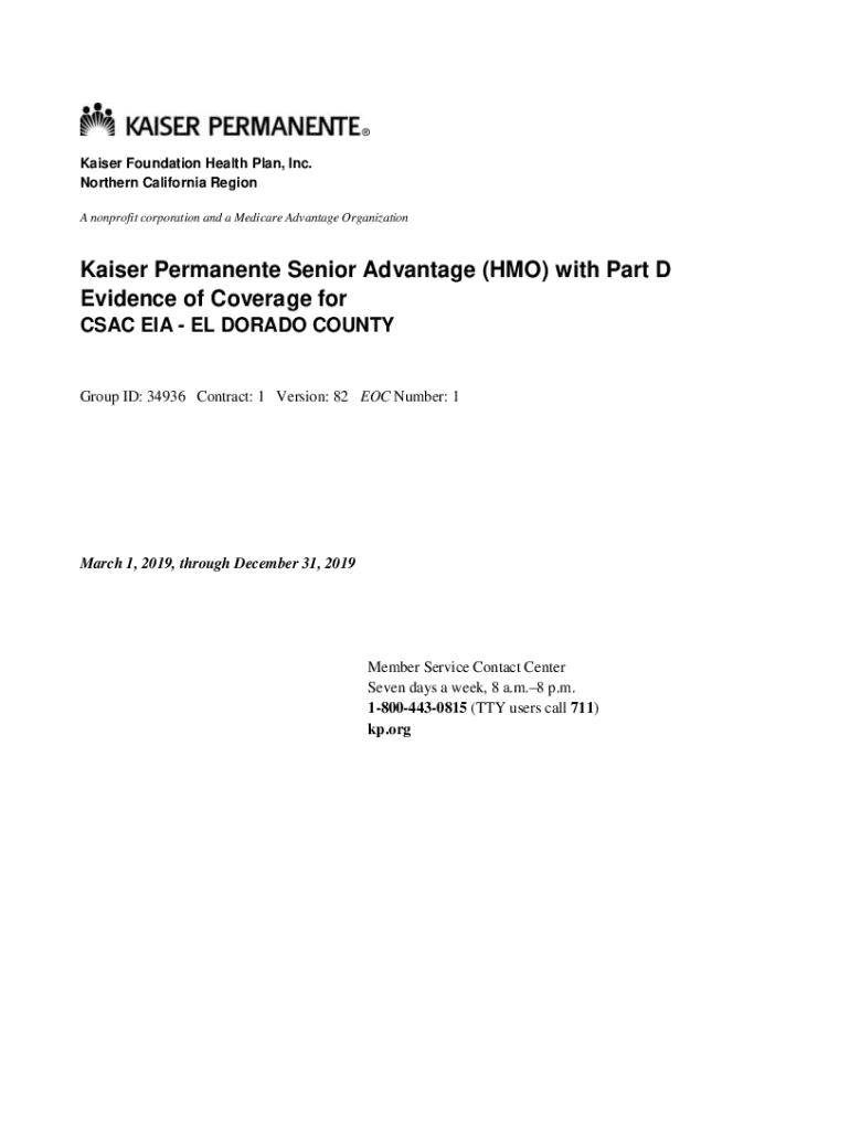 Get the free Kaiser Permanente Senior Advantage (HMO) - El Dorado ...