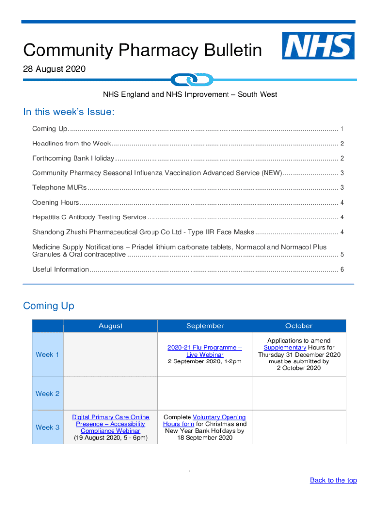 Community Pharmacy Bulletin 28 August 2020 NHS England and NHS Improvement South Weston this week's Issue: Coming Up ........................................................................................................................................