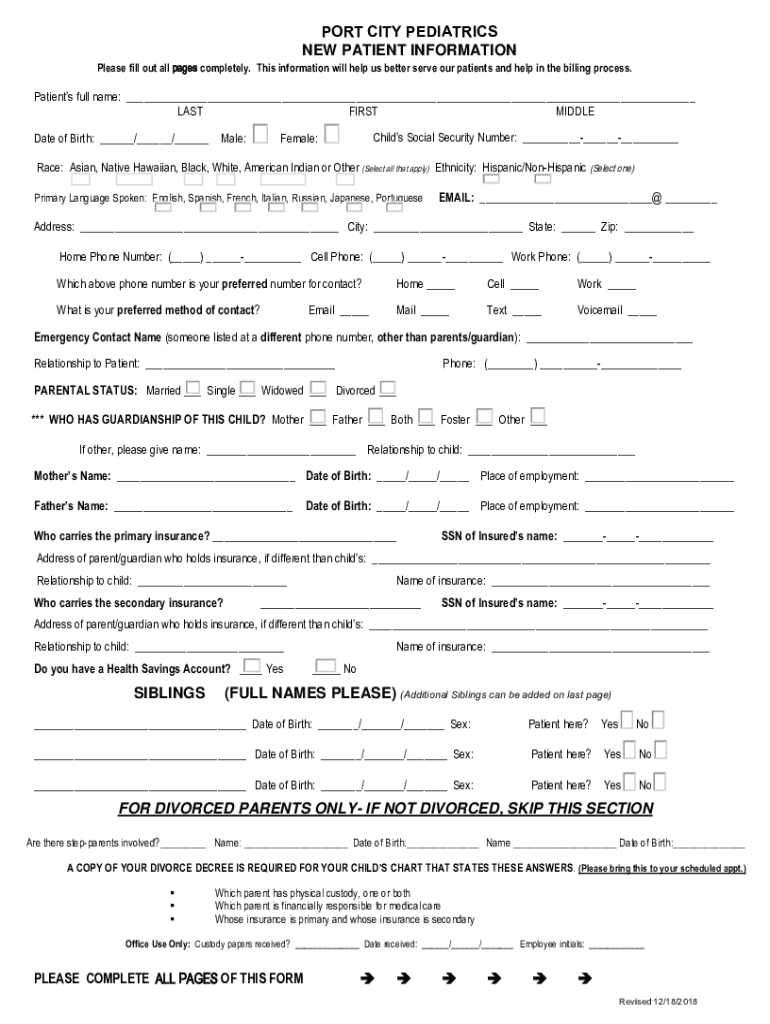 Save & Print Clear Comport CITY PEDIATRICS NEW PATIENT INFORMATIONPlease fill out all pages completely. This information will help us better serve our patients and help in the billing process. Patients
