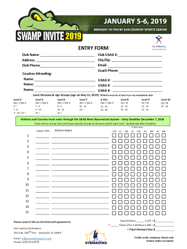 ENTRY Formal USAGE #: City/Zip: Email: Coach Phone:Club Name: Address: Club Phone: Coaches Attending: Name: Name: Name:USAGE #: USAGE #: USAGE #:Level Divisions & Age Groups (age on May 31, 2019)