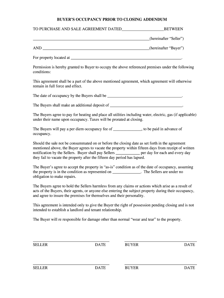 Get the free Buyer's Occupancy Prior to Closing Addendum