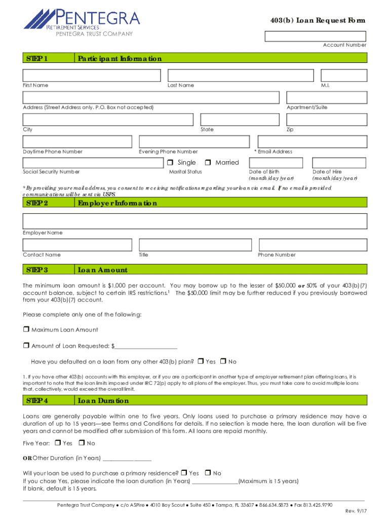 403(b) Loan Request Form Checklist PENTAGRAM TRUST COMPANY Please check with your employer regarding loan eligibility and approvals required to process this request. A Loan Request Form must be approved