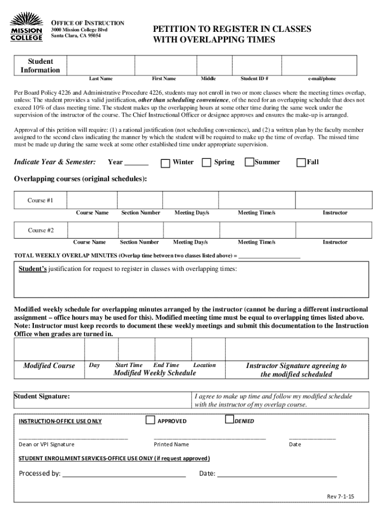 Santa Clara, CA 95054PETITION TO REGISTER IN CLASSES