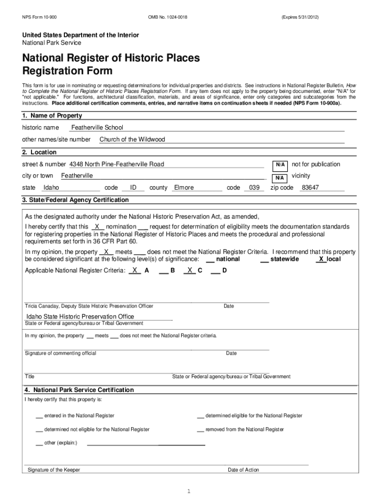 Get the free NPS Form 10-900 OMS No. 1024-0018 (Expires 5/31/2012) - history idaho