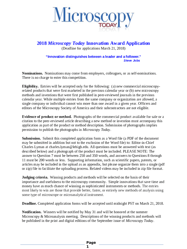 Template 2018 Microscopy Today Innovation Awards Entry instructions