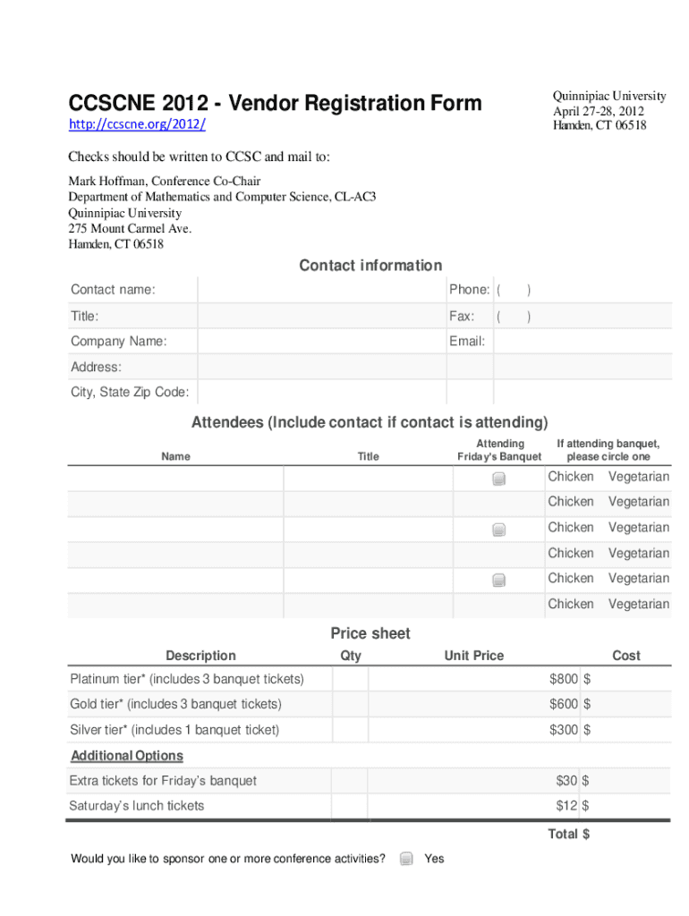 Get the free CCSCNE 2012 - Vendor Registration Form