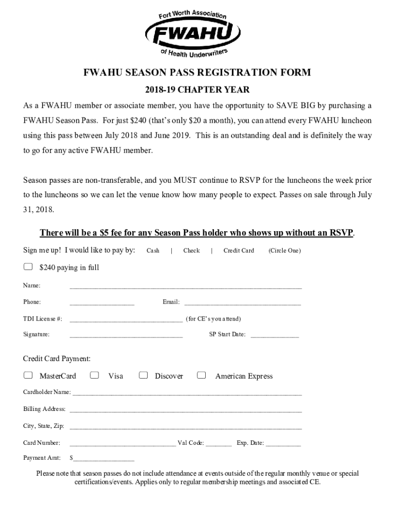 Get the free PDF FWAHU SEASON PASS REGISTRATION FORM