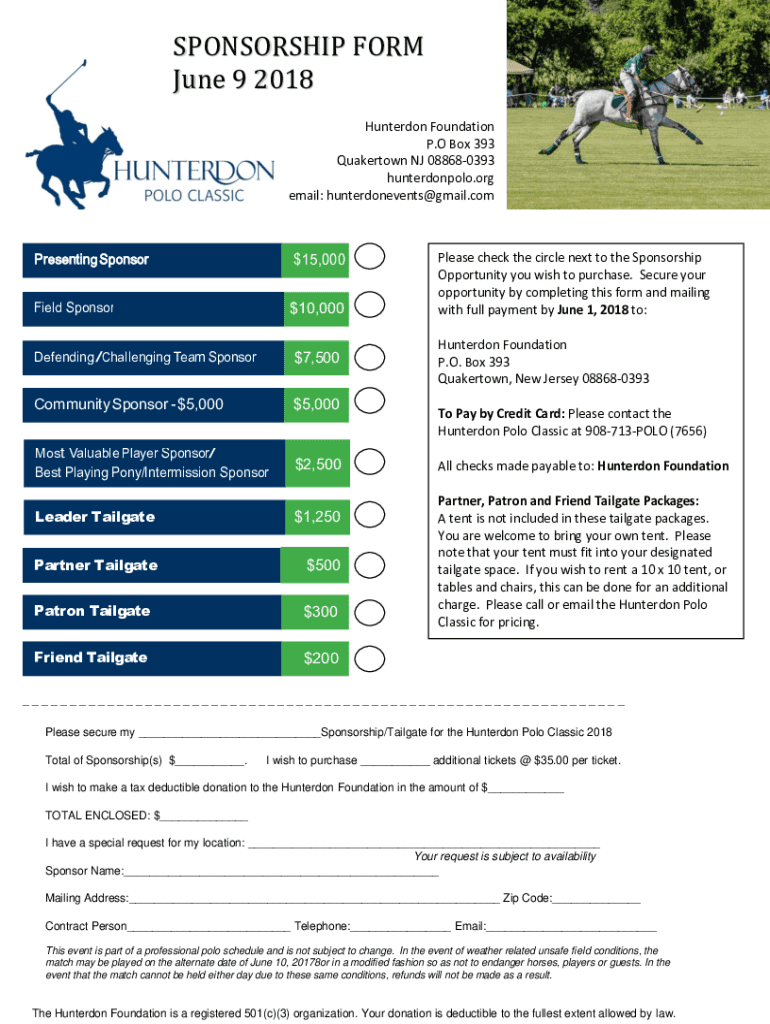 Get the free SPONSORSHIP FORM June 9 2018 - Hunterdon Polo Classic