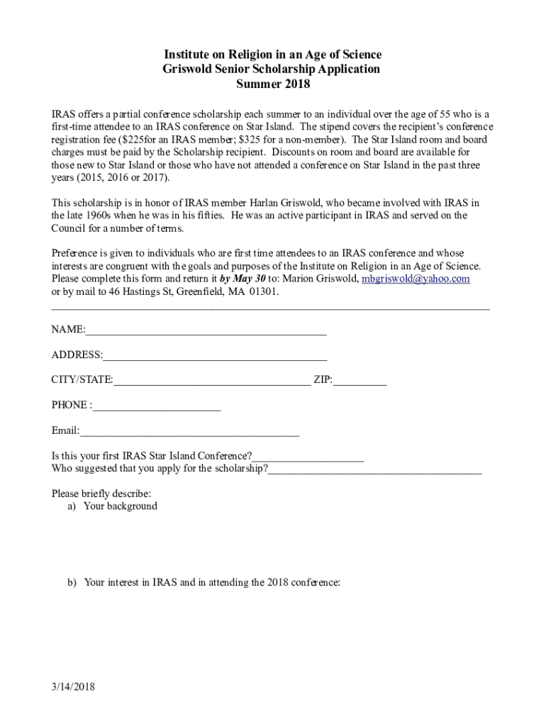 Get the free Griswold Senior Scholarship Application form rev. 2-2018