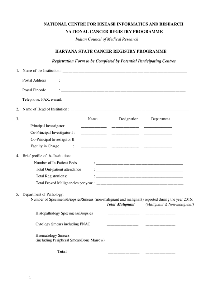 Haryana State Cancer Registry is not the form you're looking for?Search for another form here.
