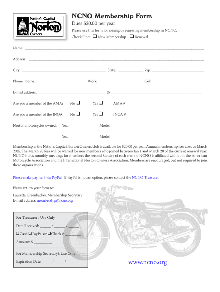 NCO Membership Form Dues $20.00 per year Please use this form for joining or renewing membership in NCO. Check One: New Membership RenewalName: Address: City: State: Zip: Phone: Home: Work: Cell Email