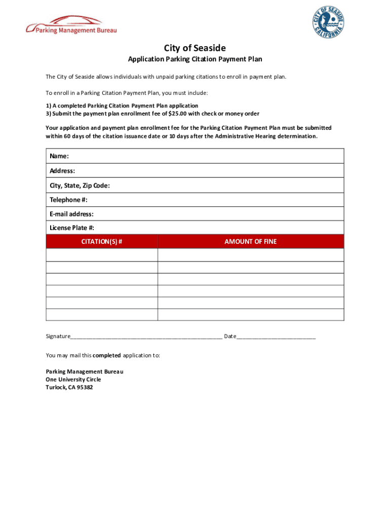 Application Parking Citation Payment Plan